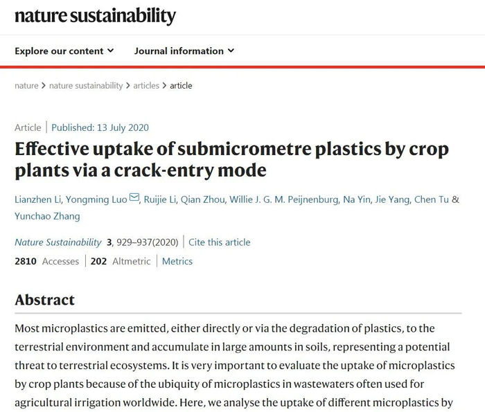 中国科学院烟台海岸带研究所与南京土壤研究所和荷兰莱顿大学的联合研究发现,莴苣和小麦作物根部的裂缝可以吸收土壤和水中的微塑料,然后传播到可食用部分。