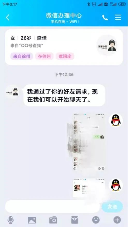 电话很快接通,陈女士连忙询问能否帮忙定位小女儿的位置并查询聊天记录,对方让陈女士加上了一个名为“微信办理中心”的微信号,并让陈女士把要查的手机号码和微信号发给他,且需要缴纳 29867 元的保证金。