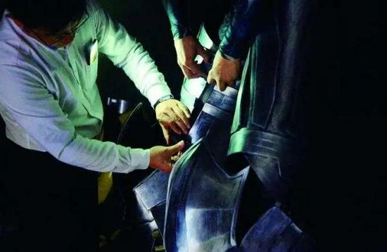 “一条腿差不多要20斤重。”王铭透露,扮演威震天的演员要像踩高跷一样,站在机甲的膝盖或大腿部位,完成操控机甲行走的动作。表演时,里面的人需要穿上隐身衣,完全隐匿掉肉眼能看到的人体的可能性。至于大家看到机甲头的扭动,实际上和头戴帽子的原理一样,演员相当于头顶着一个机甲帽子,通过头的扭动实现机甲头部的实时扭动。