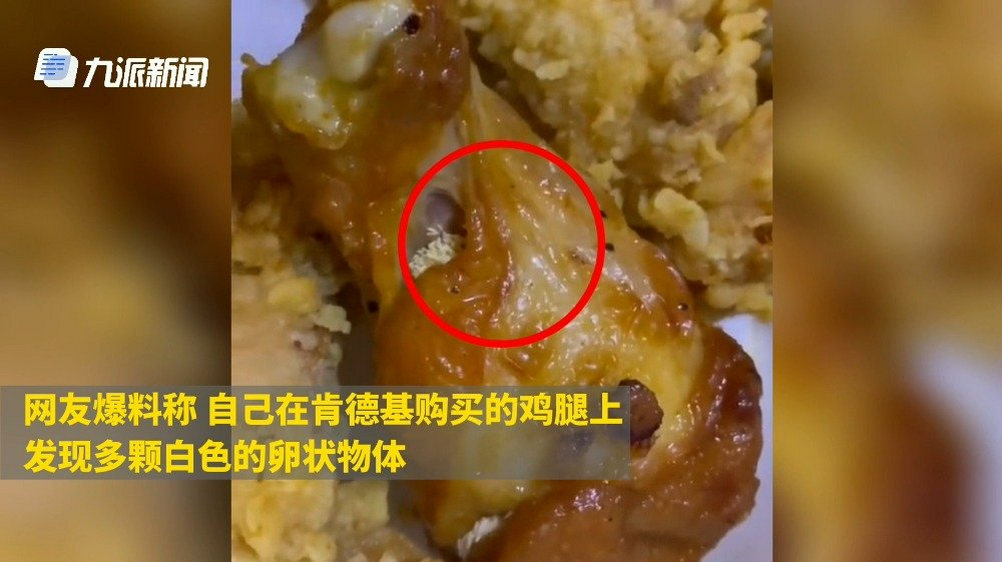 10月10日,南通,某顾客在肯德基购买的鸡腿上发现有多颗白色虫卵。