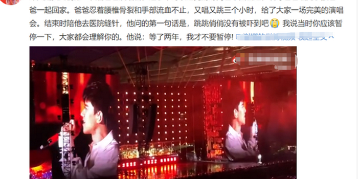 之后,再次登台的张杰不忘安慰粉丝:“请大家千万千万不要担心我的伤口,我觉得这可能是一个很好的预兆”,还说“这只不过是人生中的一个小挫折,你们会陪我的吧”,真的是又敬业又温暖!