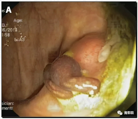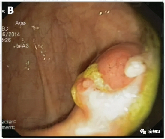 我们就给大家发一个案例,高能预警下,这个是2015年南京大学医学院附属鼓楼医院的几位专家发布的一个病例,一名45岁女性因右下腹痛入院。五天前开始腹痛,没有明显的诱因。这种阵发性钝痛主要出现在肚脐周围。起初只是以为是一位普通的阑尾炎发病患者,结果肠镜一看,乖乖隆地洞!