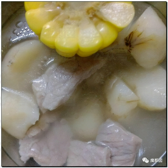 马蹄玉米猪肉汤,据说能最大程度把鲜味煮出来。