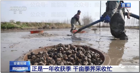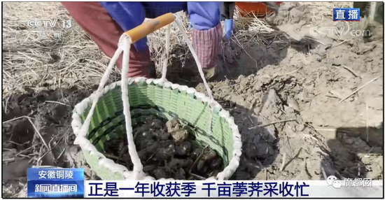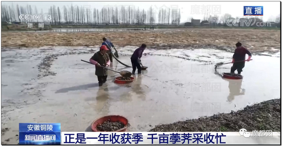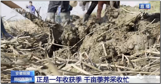 最新的采摘方式是先用水冲,然后荸荠浮起来,之后直接捞出来,我们现在吃的荸荠基本都是这种方式采摘: