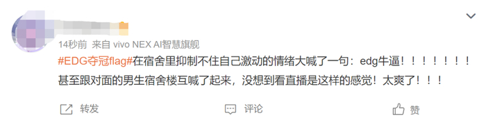 在比赛结束后,央视新闻也发微博祝贺EDG战队夺冠。