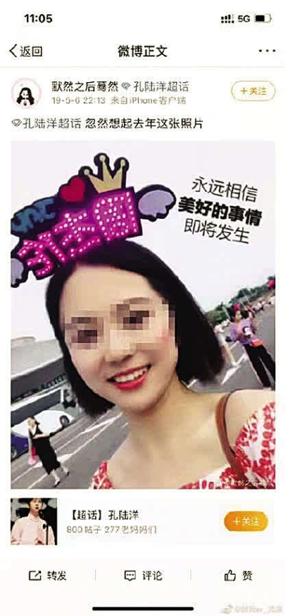 张红丽在微博中继续搜索,网友发布的截图显示,一个名为“默然之后蓦然”的账号在2019年5月6日发布了她的那张照片,并配文称:“忽然想起去年这张照片。”