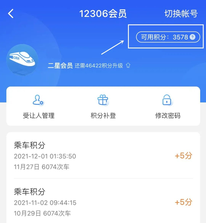 3。若已开通会员,大家可以在高铁管家app12306会员页,查询自己的积分。