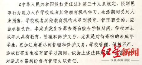 “法院的判决书上写得很清楚,我们不做过多解释。”2020年12月23日,沈阳私立实验学校向红星新闻记者回应称,有关学校与关女士的30万元纠纷曾3次对簿公堂,关女士均败诉。当记者追问老师纪某男是否已得到处理,校方表示纪某男已离开学校,不在学校任职,并表示如果家长认为学校有责任,处理有问题,可通过司法主张权利。