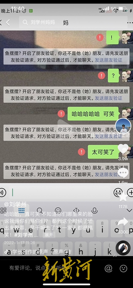 就在一个月前,刘学州才在河北警方的帮助下寻亲成功。一个月后,他在抖音、微博等社交平台表示自己再次被抛弃:被亲生母亲拉黑。17日,新黄河记者联系到刘学州本人,他告诉记者,一切都是因为“提到了利益的问题”>>