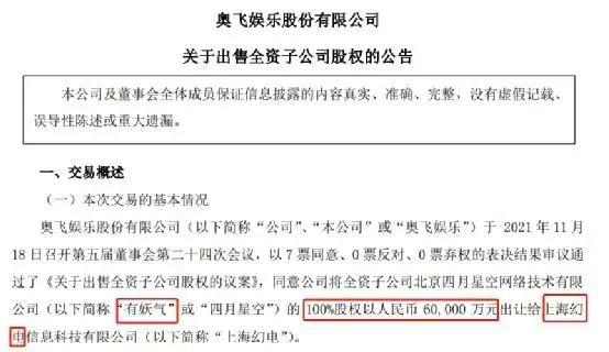 ▲ 图/奥飞娱乐出售公告