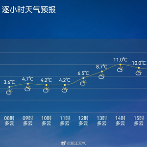 11月23日07时杭州天气预报 浙江天气 2021.11.2307:27 关注 #杭州天气预报# 杭城今6时3℃,较昨同时下降5.4℃,寒意甚浓,注意保暖防寒。杭州今天明天晴到多云。今天西北风3到4级,最高气温11℃,明天最低3℃。