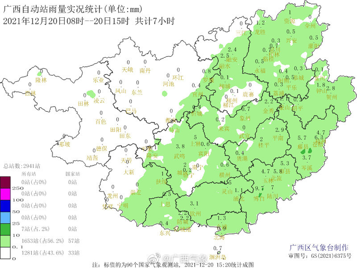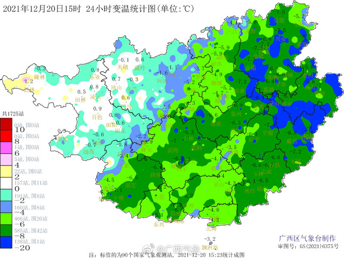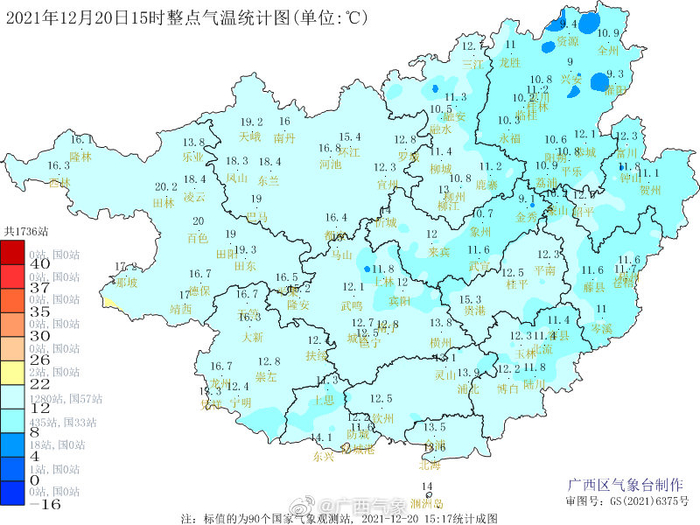 广西天气实况 广西气象 广西壮族自治区气象局 2021.12.2015:50 关注 【广西天气实况】今天08时至15时桂东、桂南出现降雨,主要以小雨为主。15时气温桂东北9~11℃,其余地区12~19℃,气温最低的兴安9℃,大部气温与昨天同一时刻相比有所下降,降幅为1~7℃,局部8℃。