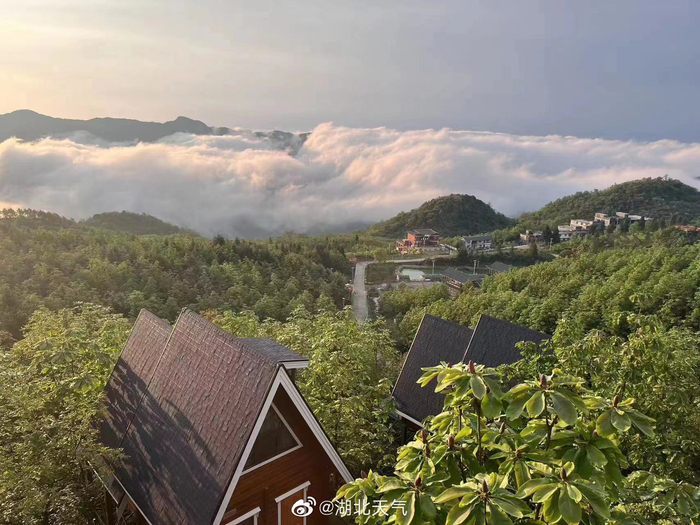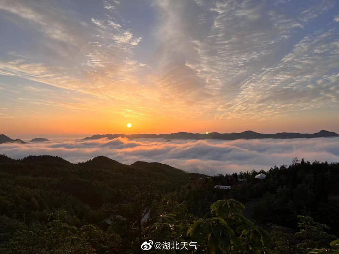 湖北咸丰坪坝营:云海日出美如仙境 湖北天气 2023.05.1714:04 关注 【湖北咸丰坪坝营:云海日出美如仙境】 雨过天晴, 全国“天气气候景观观赏地”——湖北咸丰坪坝营金色晨光伴随着流动的云海,雾浪翻腾,蔚为壮观,美出天际,宛若人间仙境。(来源:恩施咸丰杨浩、廖祖英、李鑫)