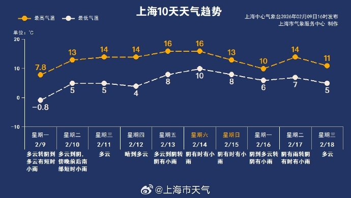 #上海未来天气趋势# 【回暖和下雨】明天云多雨弱气温升!周三周四艳阳天继续升温,周五周六有雨但不冷~~~节前雨雨雨神马的有点讨厌达咩