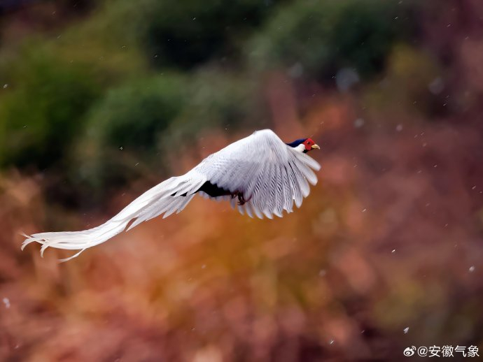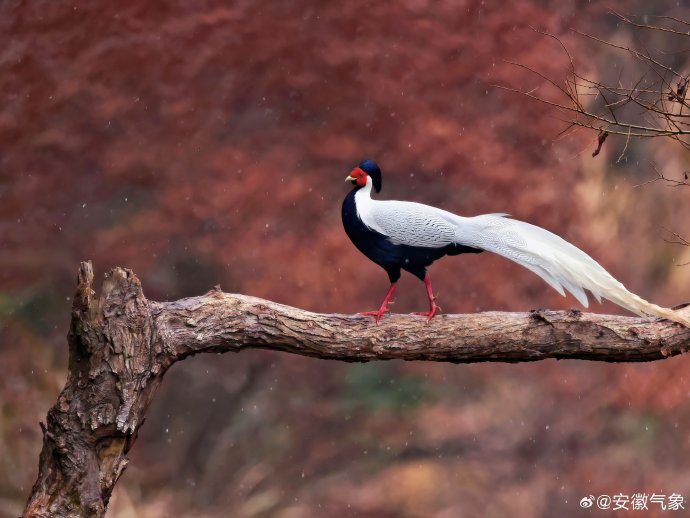#天气映像# 【祁门:白鹇与春雪共舞】皖南山间,春雪轻落林间。素有 “林中仙子” 之称的白鹇,身披素白长羽,丹颊一点,在寒枝与白雪间翩然起舞,尽显山野诗意。#早安[超话]# (安徽祁门 刘军权) ​​​​#与捷途共赴新年第一缕曙光# ​