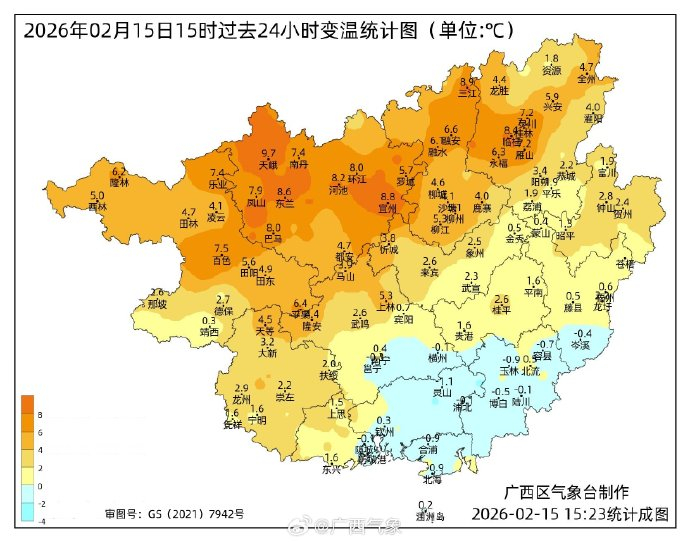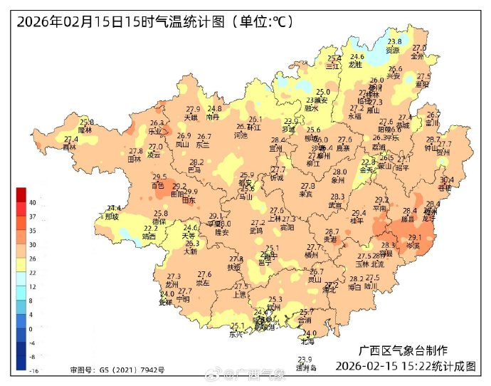 #广西天气实况# 下午3点,全区大部气温升至25~29℃,桂北升温迅猛,较昨天同一时间气温上升5~8℃,你穿短袖了么?#春节假期第1天##明天就是除夕# ​​​​