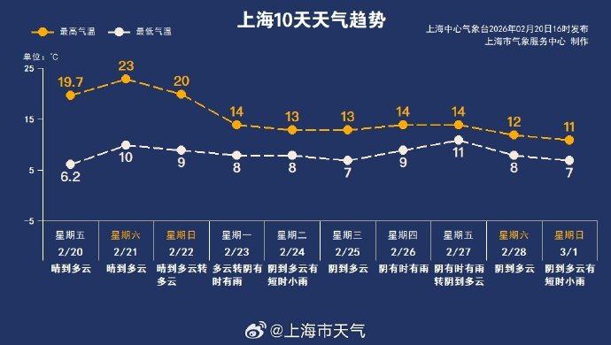 #天气趋势##春节后半段有转折性天气#大回暖之后,冷空气也接踵而至。初六中午起受冷空气影响,本市风力增大。初七初八的气温会“大跳水”,降至在8~14℃之间,并伴有降雨天气。假期返程遇上降雨,提醒大家留意最新的预报预警信息,合理规划行程。另外,26~27日还有一次降雨天气过程,大家也可以提前关注起来。