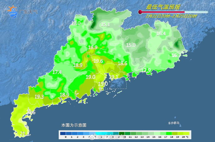 22日(初六),韶关、清远和肇庆市县多云间阴天,有小雨,其余市县多云间阴天,局部有零星小雨,大部市县早晚有(轻)雾。