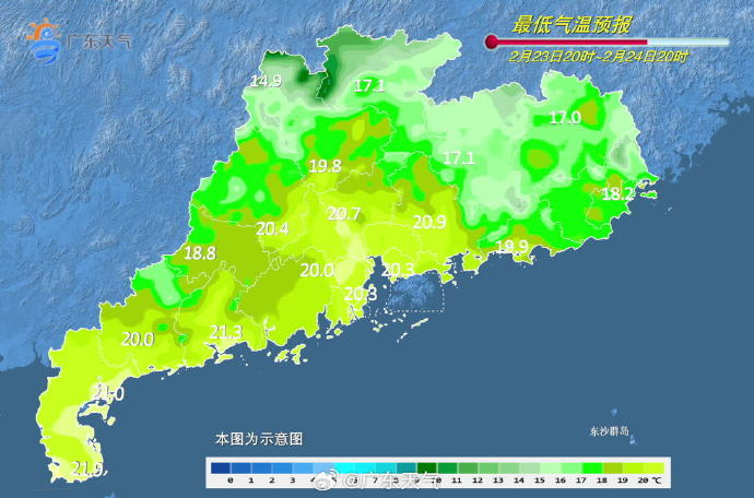 【广东北部多雨雾天气,返程要注意交通安全】预计,22-24日,粤北偏北市县多云转阴天,渐转雨雾天气,珠三角和粤东市县,云量增多,间中有分散小雨,粤西市县以多云间阴的天气为主,间中局部有零星小雨。另外,23日,粤东海面东北风6级阵风7级;24日白天到夜间,有弱冷空气南下我省,气温小幅下降;22-24日,粤西海面、北部湾海面和琼州海峡早晚时段有轻雾。交通出行需关注雨雾天气导致的低能见度、道路湿滑等不利影响;目前森林火险等级高,户外活动、居家用火用电注意防火安全。#初八广东弱冷空气齐开工# #广东晚间预报# 具体预报: 星星22日(初六),韶关、清远和肇庆市县多云间阴天,有小雨,其余市县多云间阴天,局部有零星小雨,大部市县早晚有(轻)雾。 星星23日(初七),肇庆北部、粤北偏北和粤东沿海市县多云到阴天,有分散小雨,其余市县多云间阴天,局部有零星小雨,大部市县早晚有(轻)雾。早晨最低气温:粤西沿海和珠江三角洲中南部市县17~20℃,其余大部市县14~16℃。 星星24日(初八),粤北市县阴天有小雨局部中雨,珠三角和粤东市县多云到阴天有分散小雨,其余市县多云间阴天,局部有零星小雨,大部市县早晚有(轻)雾。早晨最低气温:粤西、珠江三角洲中南部和粤东南部沿海市县17~20℃,其余大部市县13~16℃。 星星海上天气预报:22日夜间到23日白天,粤东海面东北风6级阵风7级,台湾海峡东北风6~7级阵风8级;22-24日的早晚时段,粤西和北部湾海面有轻雾。 星星琼州海峡:22-24日,多云间阴天,早晚时段有轻雾(最低能见度2-3公里)。