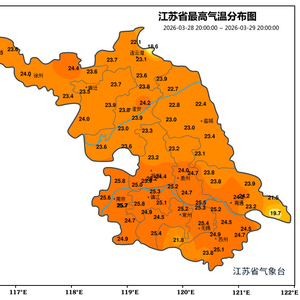 #气温琅琊榜#今日我省大部分地区最高气温都在21-25℃,其中扬州邗江区最高,25.9℃。