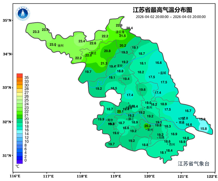 #气温琅琊榜#今天我省气温北高南低,最高气温出现在沛县23.5℃ ,邳州紧随其后为23.4℃。