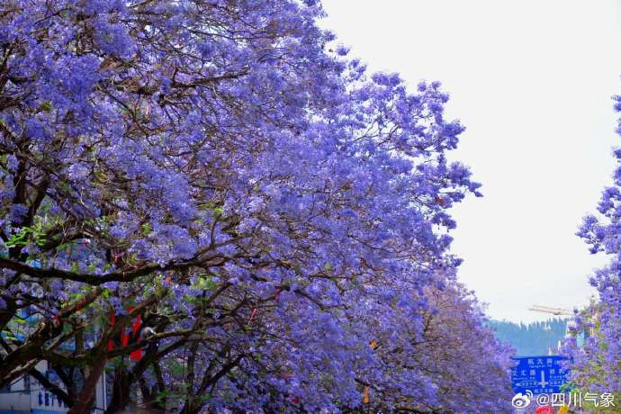 #天气景色# 近日西昌市航天北路上万紫千红、繁花似锦,数十株树龄超 40 年的蓝花楹老树进入盛花期, 漫步航天北路,抬头便是漫天紫霞,作为全城蓝花楹景观的核心地标,高大的树冠交织绵延,形成一条数百米长的梦幻紫色隧道。蓝花楹花期将持续到五月上旬,赶紧抓住五一小长假这个好时机来西昌打卡绝美蓝花楹吧!(刘信 朱兴窕)