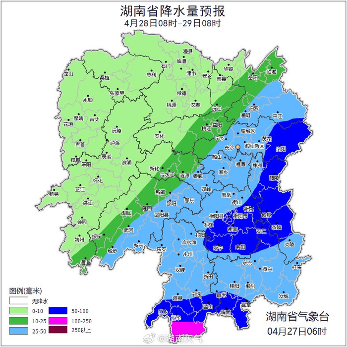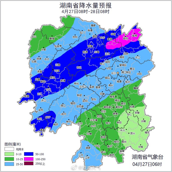 #湖南天气预报# 【#湖南再迎较强降水过程#,27日湘北湘中、28日湘东湘南将有大到暴雨、局地大暴雨!】湖南省气象台预计,今(27日)起湖南将有一次较强降水天气过程,其中27日湘北湘中、28日湘东湘南有大到暴雨、局地大暴雨,并伴有短时强降水、雷雨大风等强对流天气;29日降水减弱,过程趋于结束;30日清晨湘中以北部分地区有雾。