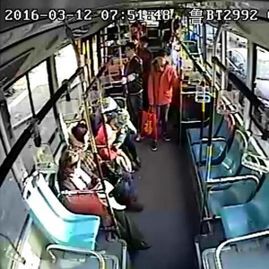 12日,在青岛632路公交车上,一名3岁左右的儿童将鞭炮放在口袋中带上车,并在车内